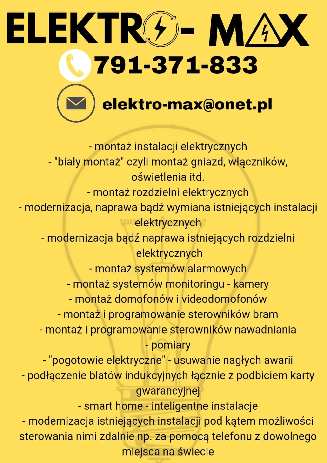- montaż instalacji elektrycznych