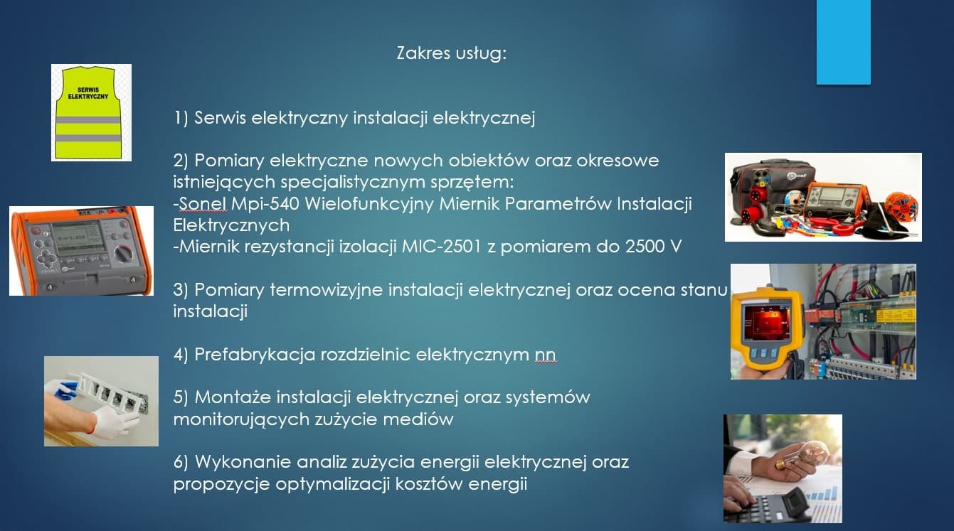 -Pomiary elektryczne budynków z wykorzystaniem certyfikowanego sprzętu oraz sporządzenie, dokumentacji.