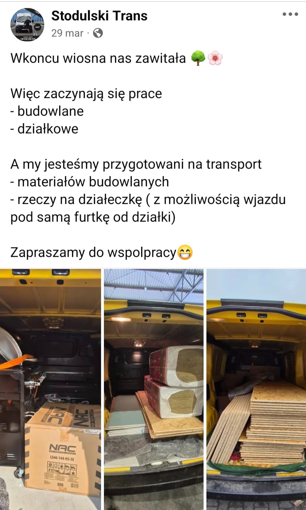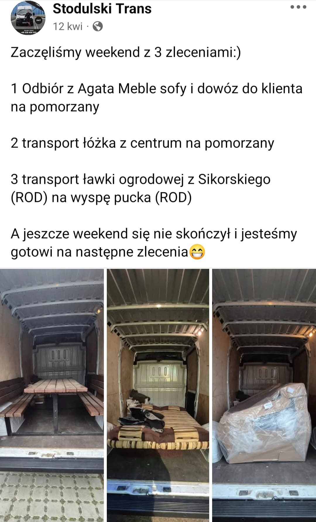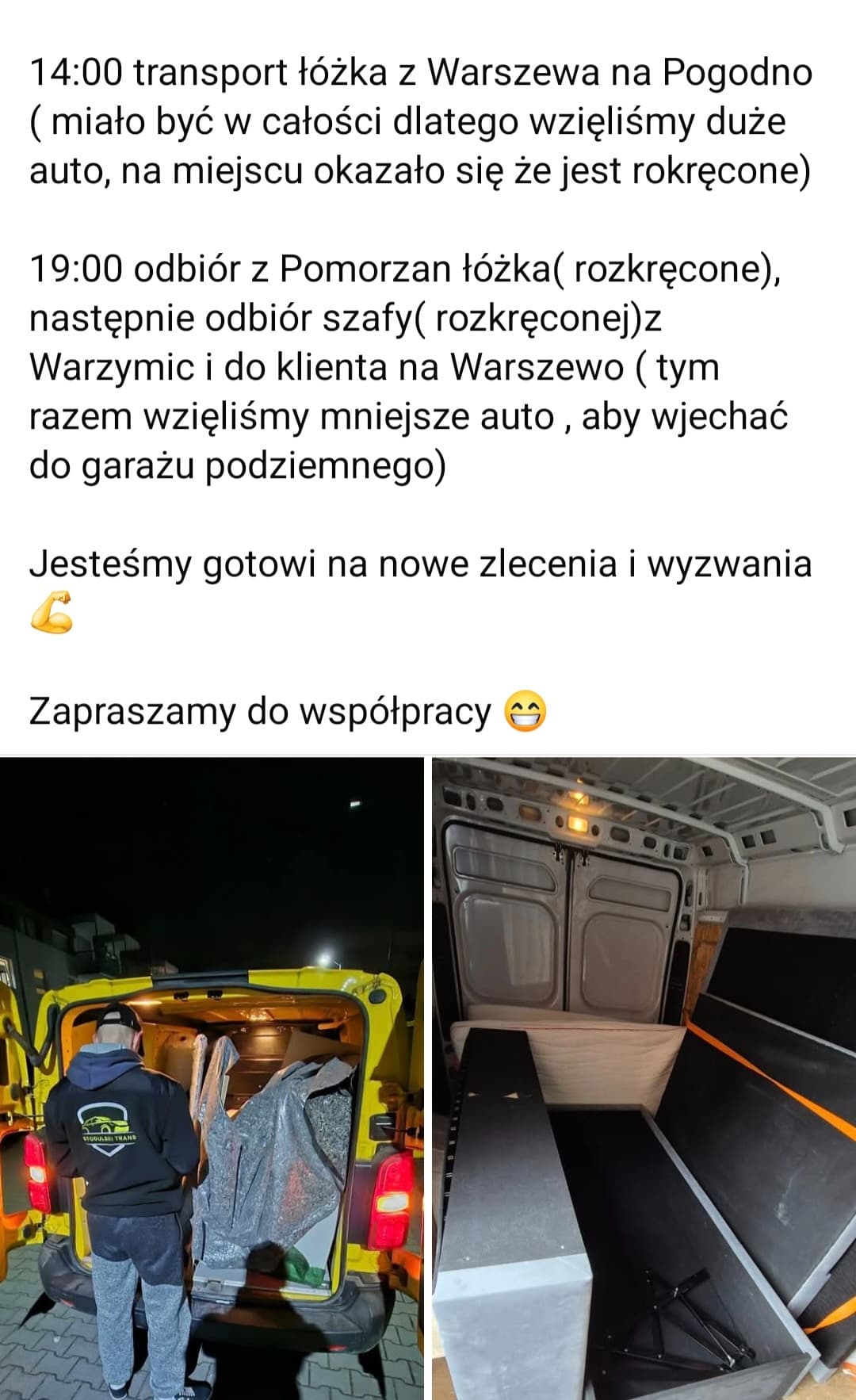 W każdy czwartek jeździmy do Poznania ( na pusto) po towar więc zawsze możemy po drodze zabrać rzeczy za minimalne koszta.