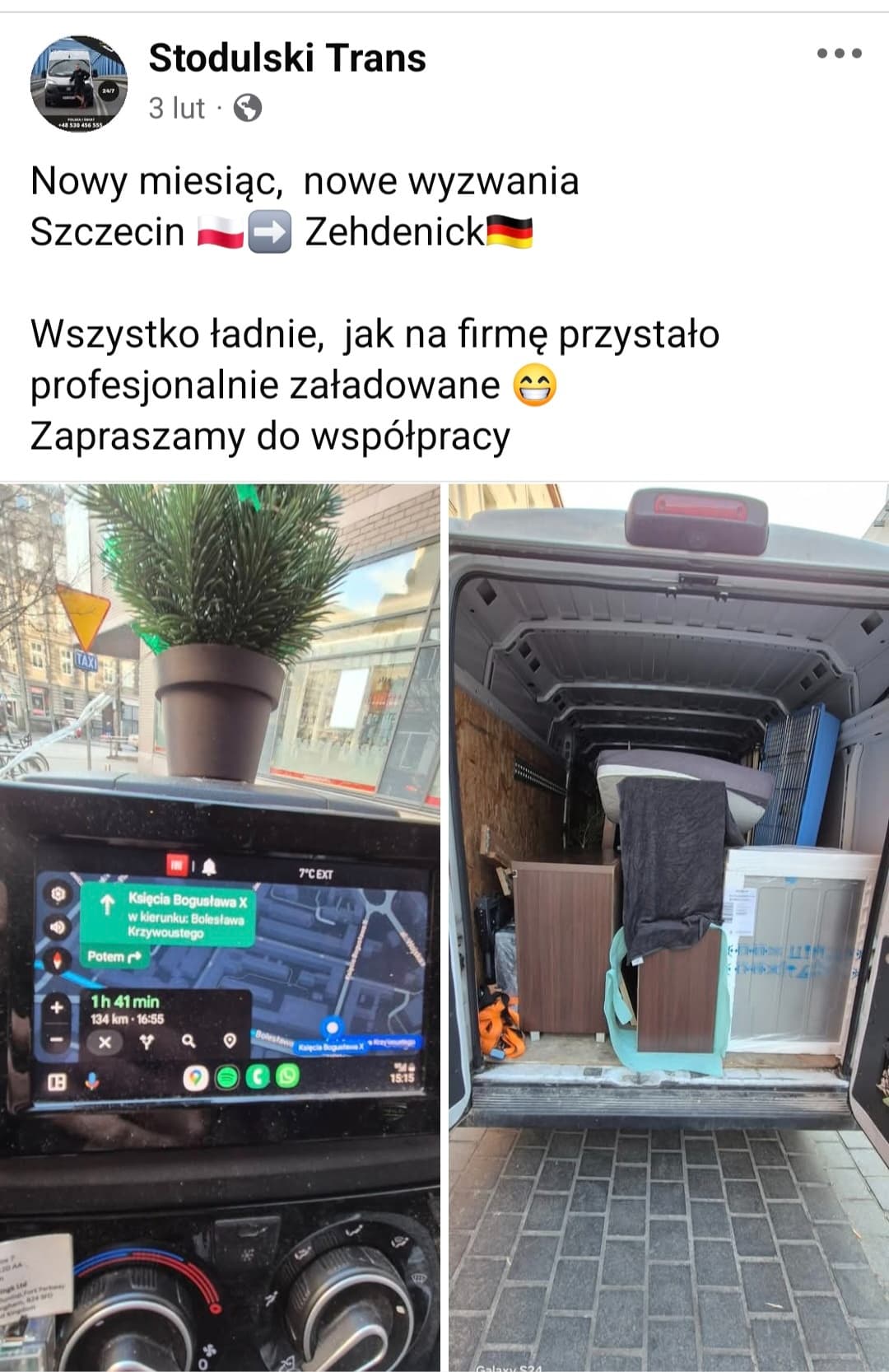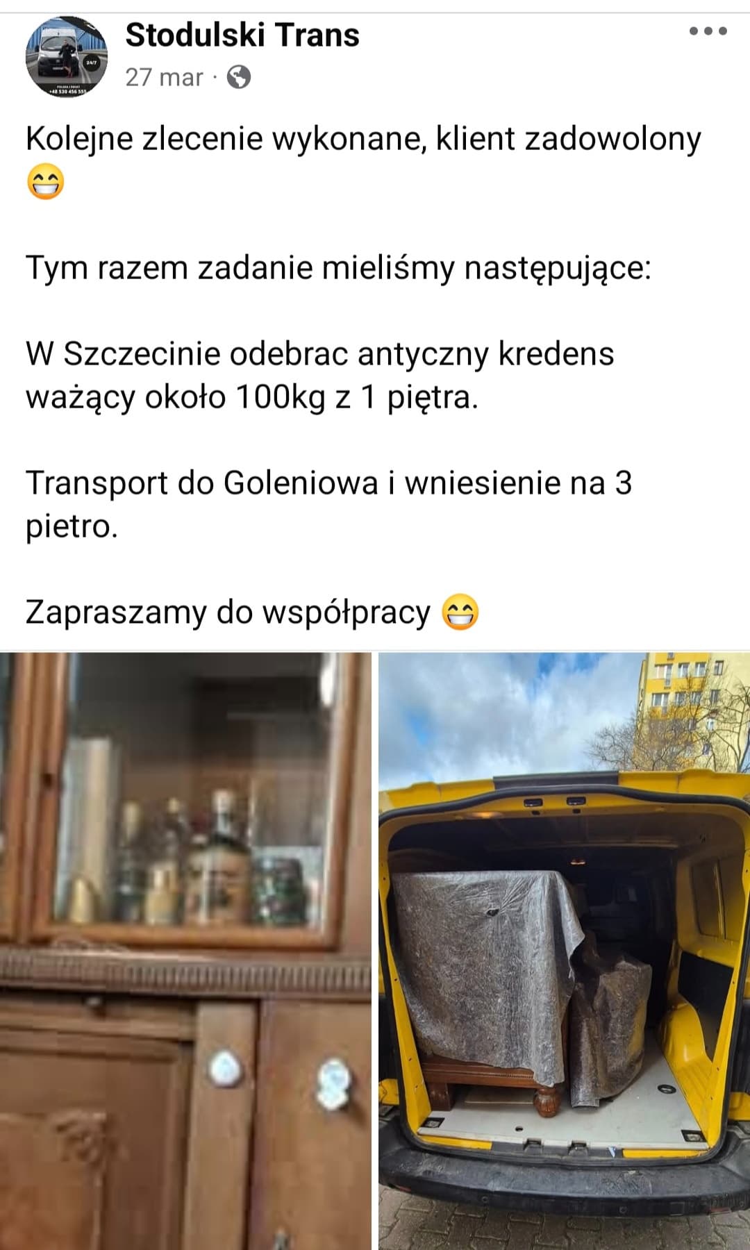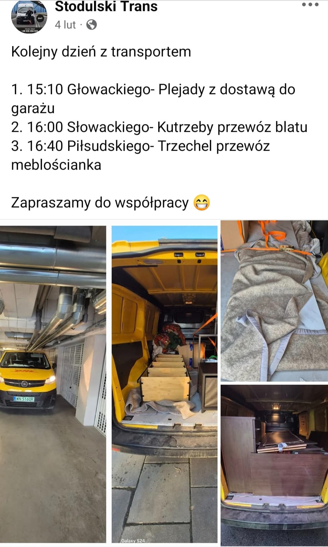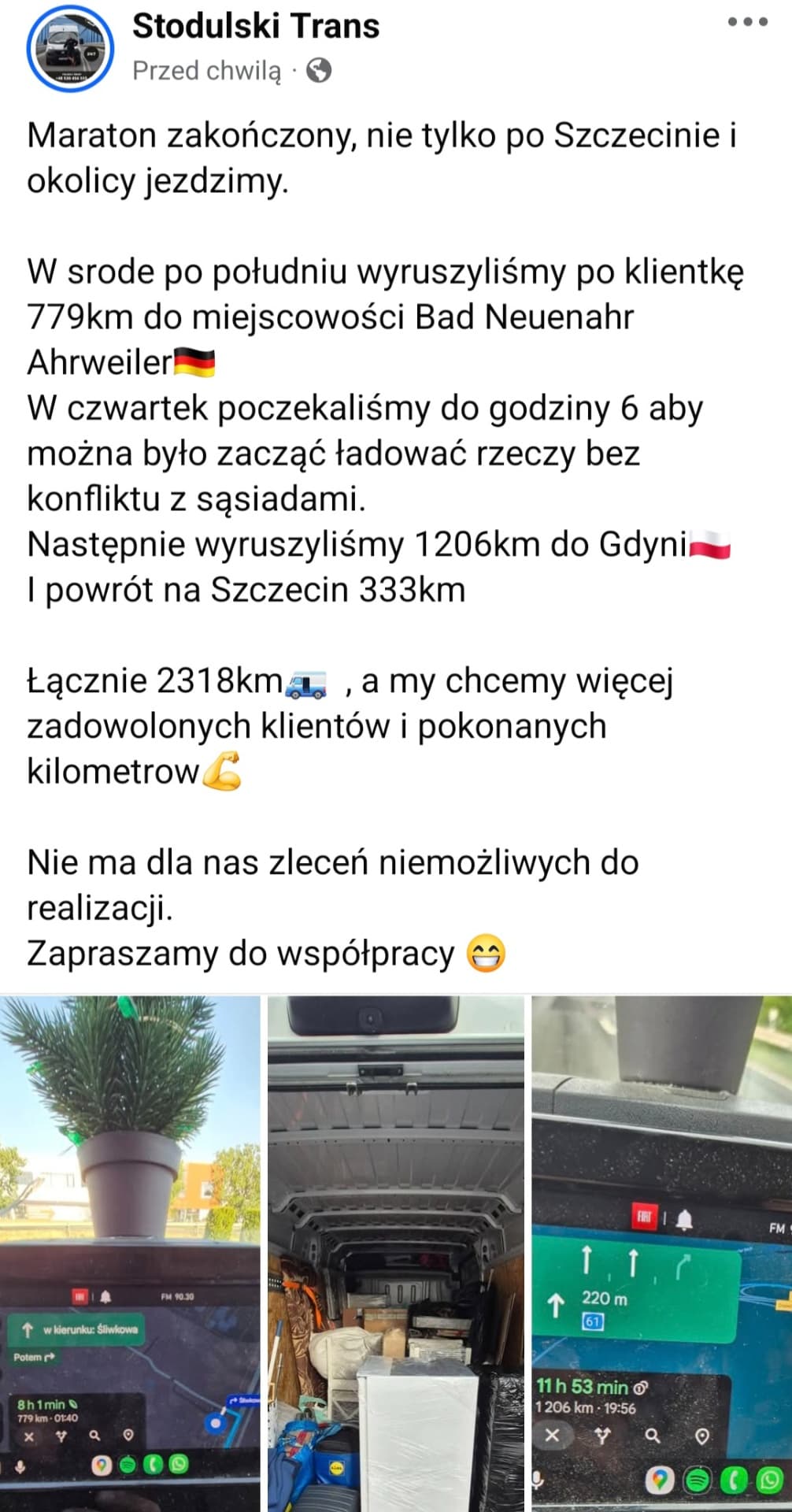 W każdy czwartek jeździmy do Poznania ( na pusto) po towar więc zawsze możemy po drodze zabrać rzeczy za minimalne koszta.