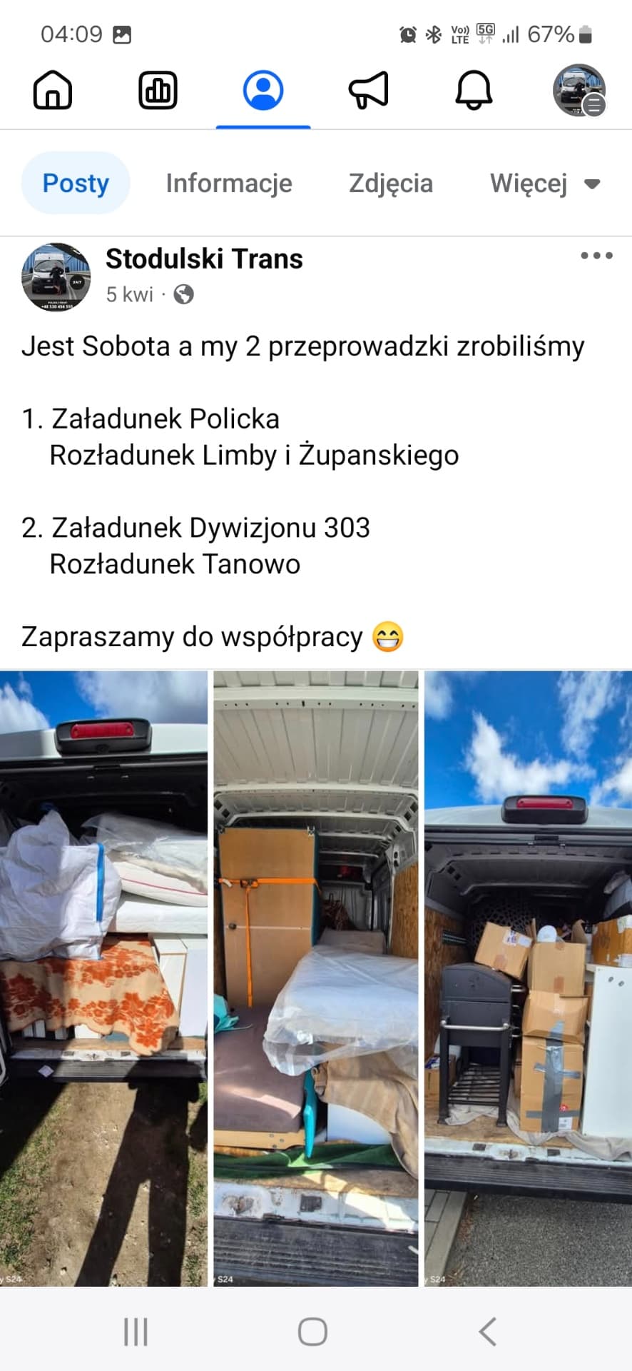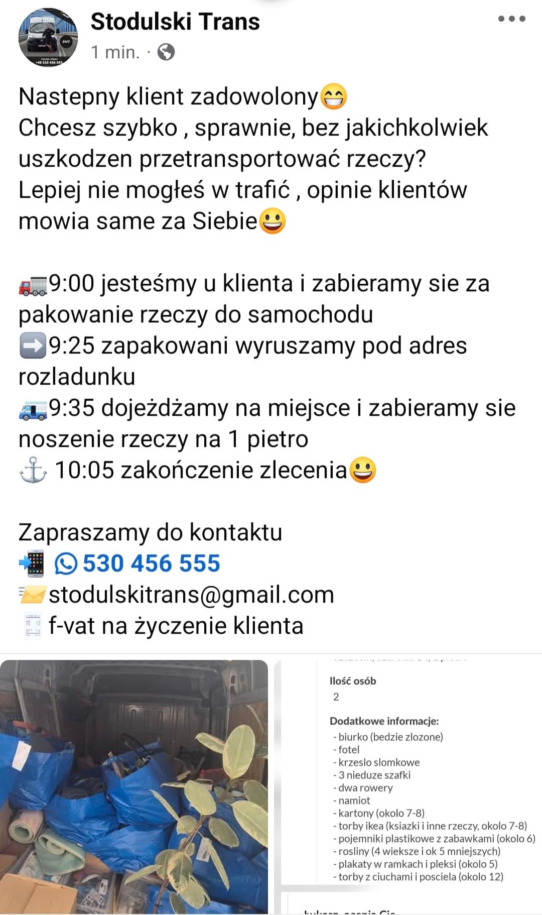 Mam wieloletnie doświadczenie w przeprowadzkach , transporcie ludzi oraz różnych towarów.